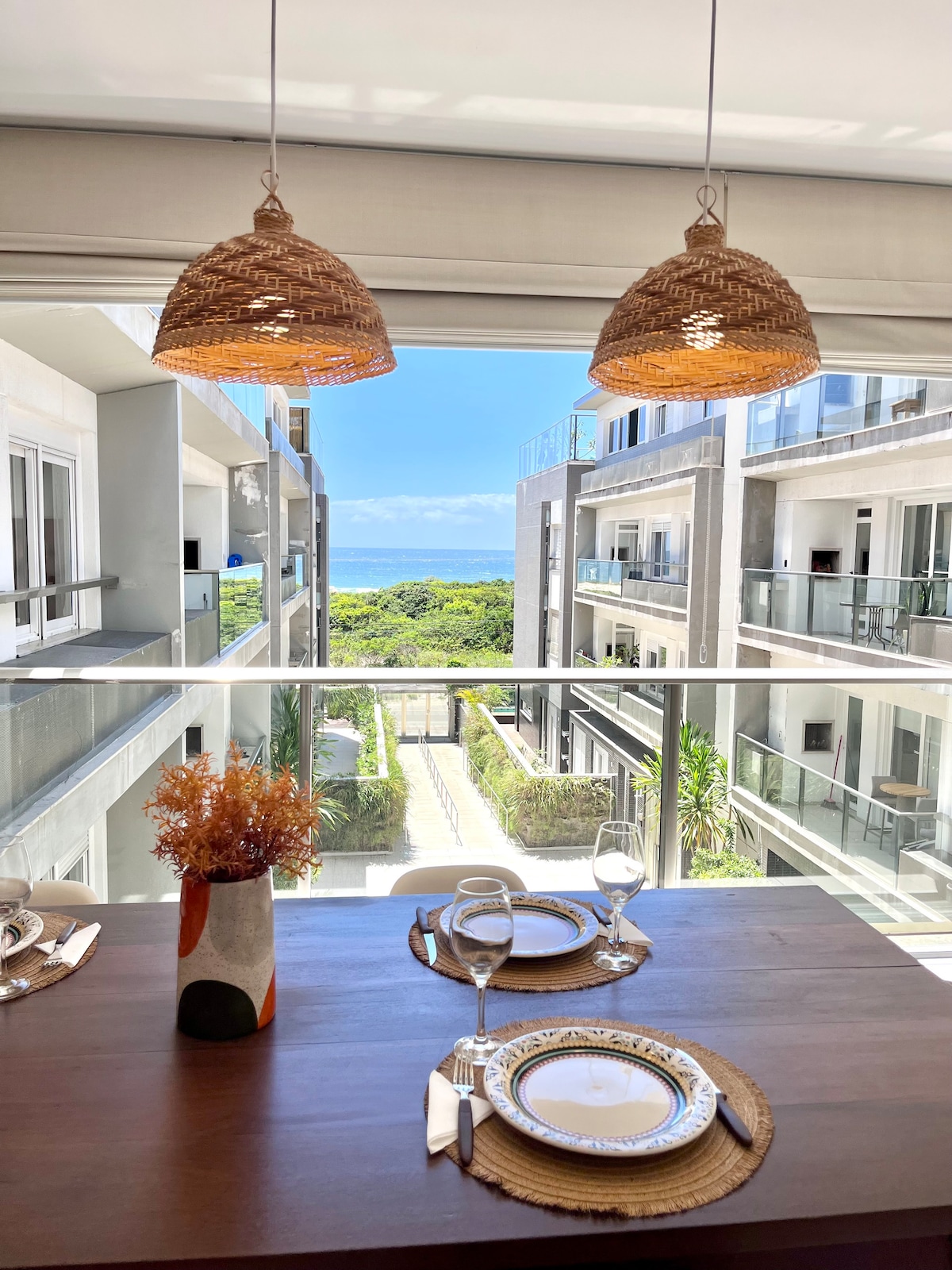 Cómodo apartamento de estilo resort frente al mar.