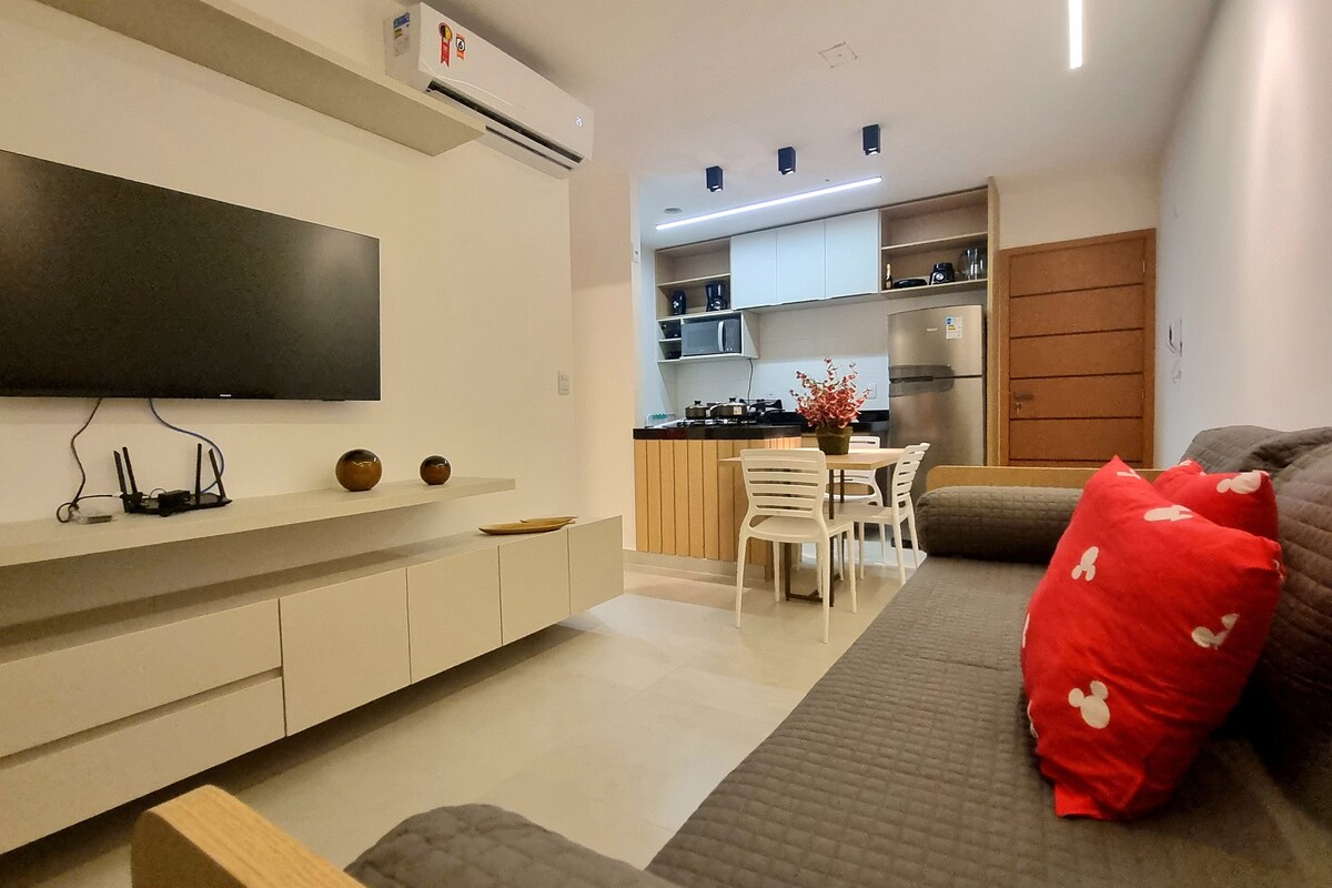 *Paga en hasta 6 cuotas sin intereses *Aire en todas las habitaciones *Hasta 5 personas: *2 manzanas de la feria de artesanía *350 m de Beira Mar *Aceita pet No sé si alguna vez te ha gustado tanto un AP antes, pero debo decirte que tiene un ALTO NIVEL e una ubicación ideal para que disfrutes de la playa y llegues a los principales centros comerciales y centros comerciales y de convenciones. Todo está a pie: mercado/panadería/restaurantes/farmacias/Jangadas/bares Es RARO encontrar un apartamento como este
