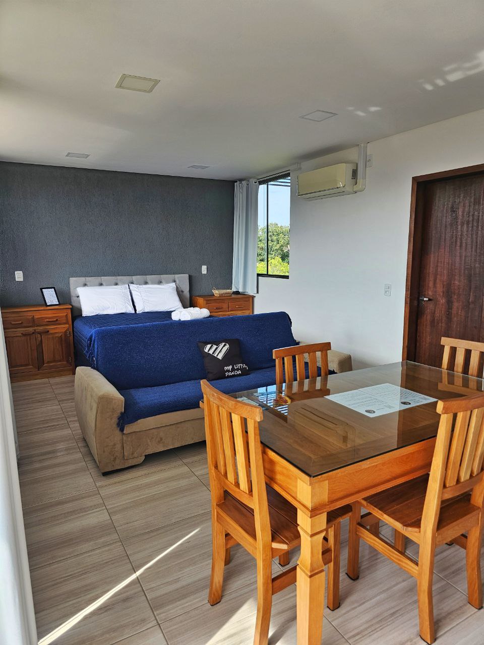 Loft con vista panorámica a Praia do Rosa, lugar Tranquilo y elegante, rodeado de bosque atlántico, a 5 minutos andando de la playa! Ducha de gas a presión, aire acondicionado frío-calor, cocina americana completa, balcón con hamaca, sillas de playa y sombrilla!!yo ¡Ropa de cama y toallas! Internet 300mb, Smart TV 43 ATENCIÓN: No se permiten fiestas ni música alta, respetar el periodo de silencio a partir de las 22h.