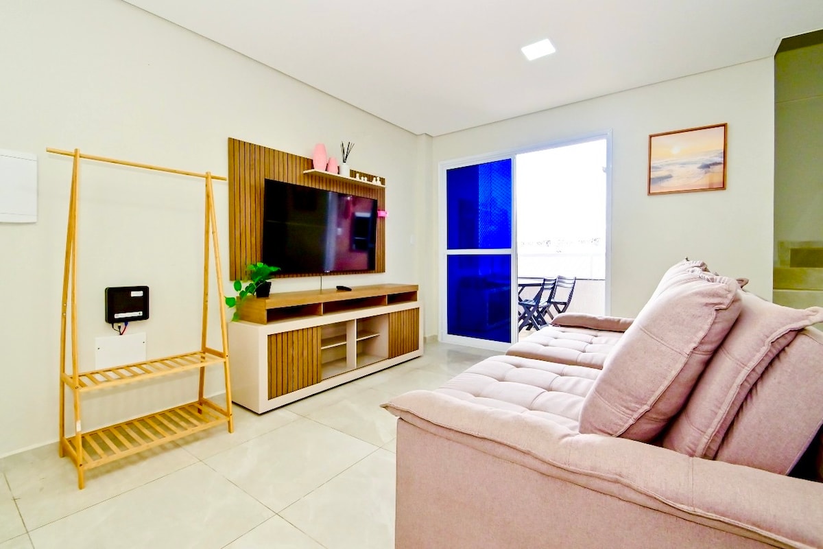 Maravilloso apartamento entre el mar y la naturaleza, 02 dormitorios con persianas eléctricas y aire acondicionado, 02 baños, TV cine 60” 4k con Netflix, Hbomax abiertos, Xbox One, Wifi, TV en todas las habitaciones, barbacoa en el balcón, muebles planificados en todos los ambientes, 02 lugares de estacionamiento cubierto, sillas de playa y sombrilla. Piscina para adultos y niños con playa y raia semiolímpica, cancha multideportiva, gimnasio, sala de juegos con sinuca y sala de juegos infantiles. Apartamento para recibir a su familia