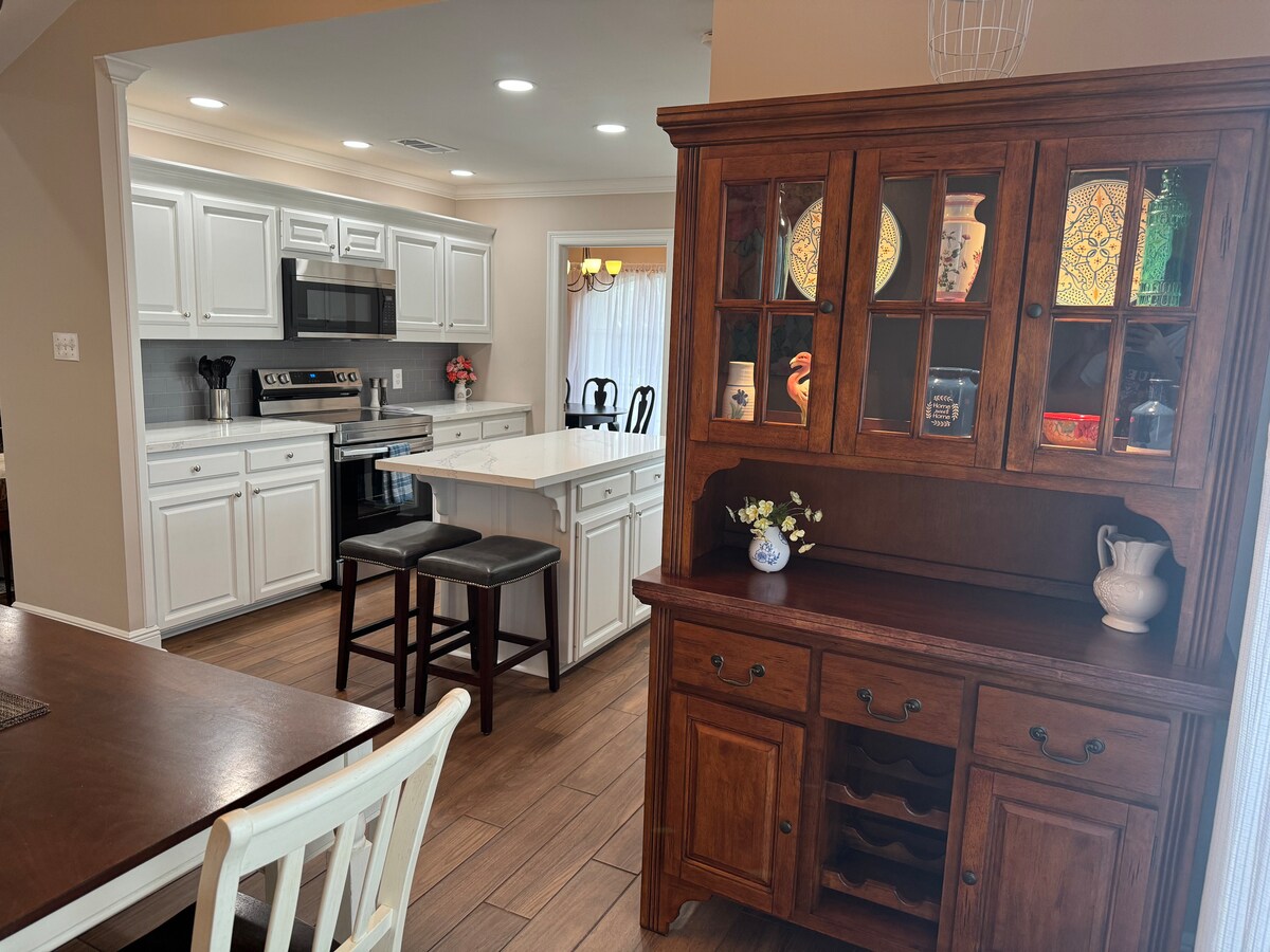 Diseñada para la comodidad y el confort, esta casa adosada de Prairieville ofrece 1 cama tamaño king, 2 camas tamaño queen, un sofá, colchón de aire, televisores con streaming y wifi rápido. Cocina totalmente equipada con múltiples opciones de café, juegos y juguetes para niños, y un pequeño patio trasero vallado para pasar tiempo en familia. A menos de 20 minutos de LSU y del centro de Baton Rouge. Perfecto para estancias cortas y largas, con la limpieza como máxima prioridad.
