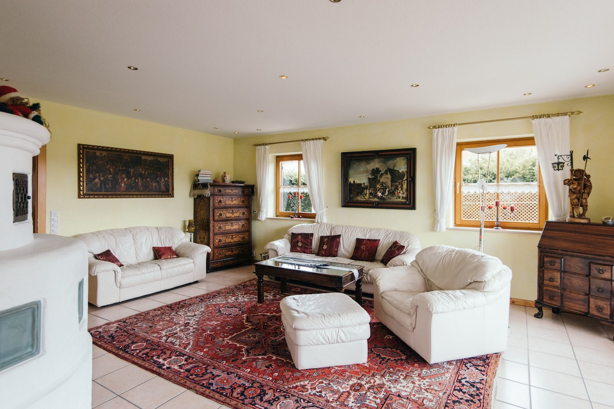 Esta es una casa de madera acogedora y original, construida hace más de 80 años con un amplio jardín. Disfruta de los alrededores saludables y el gran jardín. No hay finca de lujo, pero una auténtica y acogedora casa familiar bávara con barbacoa, áreas de estacionamiento, terraza, porche y una casa ajardinada con sauna. Los propietarios de autos electrónicos encontrarán un Wallbox (11 kW, tipo 2). Cocina nueva totalmente equipada, baños modernos (calefacción por suelo radiante), TV de pantalla plana, wifi gratuito y piano. Pisos de madera nuevos en toda la casa.