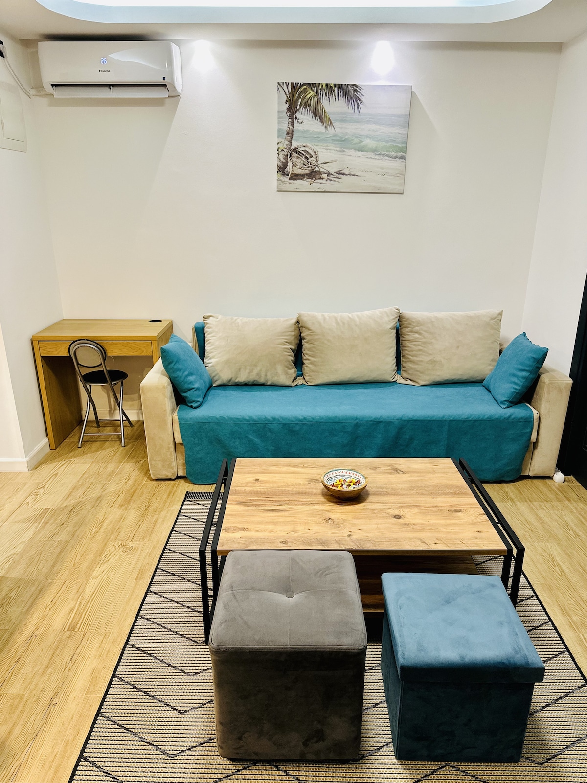 Acogedor apartamento azul con balcón