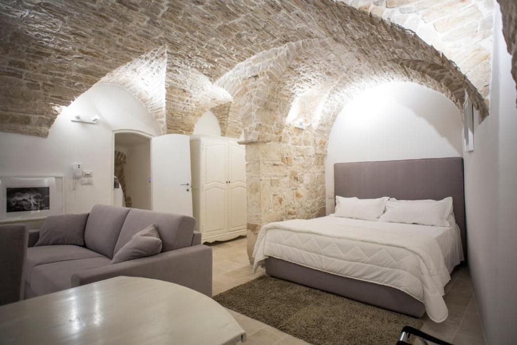 En tonos blancos y azules, la habitación está equipada con una cama doble con un colchón de espuma viscoelástica y ropa de cama , un baño privado y ropa de baño, un espacio de bar con sillas y una mesa de café para el desayuno. Posibilidad de vino y prosecco. Amueblados con el típico estilo mediterráneo de Apulia, te harán sentir a gusto. Fuera de la habitación encontrarás un patio privado con decoración al aire libre,rodeado de olivos centenarios y plantas autóctonas.