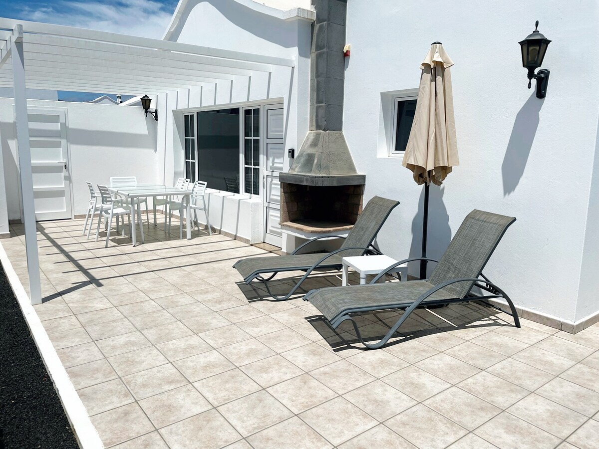 This well situated house has two rooms and two bathrooms and is located in a quiet area with a communal swimming pool. The house has all you need for total independence (kettle, toaster, microwave oven, an electric stove, BBQ, TV, NETFLIX ! wifi and sun beds on the terrace) Playa Blanca town is located only 700 meters away where you can find everything you may need including, supermarkets, and restaurants. Flamingo beach (one of the beautiful beaches on the island) is located only 150 meter far.