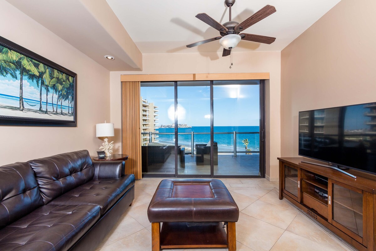 ¡Escápate a nuestro condominio de lujo de 2/2 en la Fase Uno con impresionantes vistas al mar de Cortés! Disfruta de un balcón privado con vistas a Sandy Beach, donde te esperan impresionantes amaneceres y puestas de sol en el segundo piso. Este exclusivo condominio cuenta con una suite principal con acceso al balcón, una espaciosa habitación para huéspedes, WiFi de alta velocidad, tres televisores de pantalla plana, cocina completa, lavadora/secadora y acceso directo a piscinas, playas y bares para nadar. Capacidad para 7 huéspedes (tarifa adicional para el 7). ¡Tu escapada perfecta a la playa de arena comienza aquí!