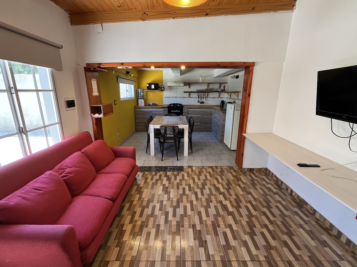 A solo media cuadra del mar, la Casa es ideal para familias que buscan tranquilidad y conexión con la naturaleza. Despierta con el canto de los loros y disfruta del cordón de médanos que rodea Playa Bonita. Casa independiente, completamente equipada, con gran patio arbolado, parrilla, horno de barro, aire acondicionado, WIFI y Smart TV. Un refugio cálido donde la brisa marina y los aromas del mar te acompañan. Si te gustó este alojamiento para tu viaje, no olvides guardarlo en favoritos🧡