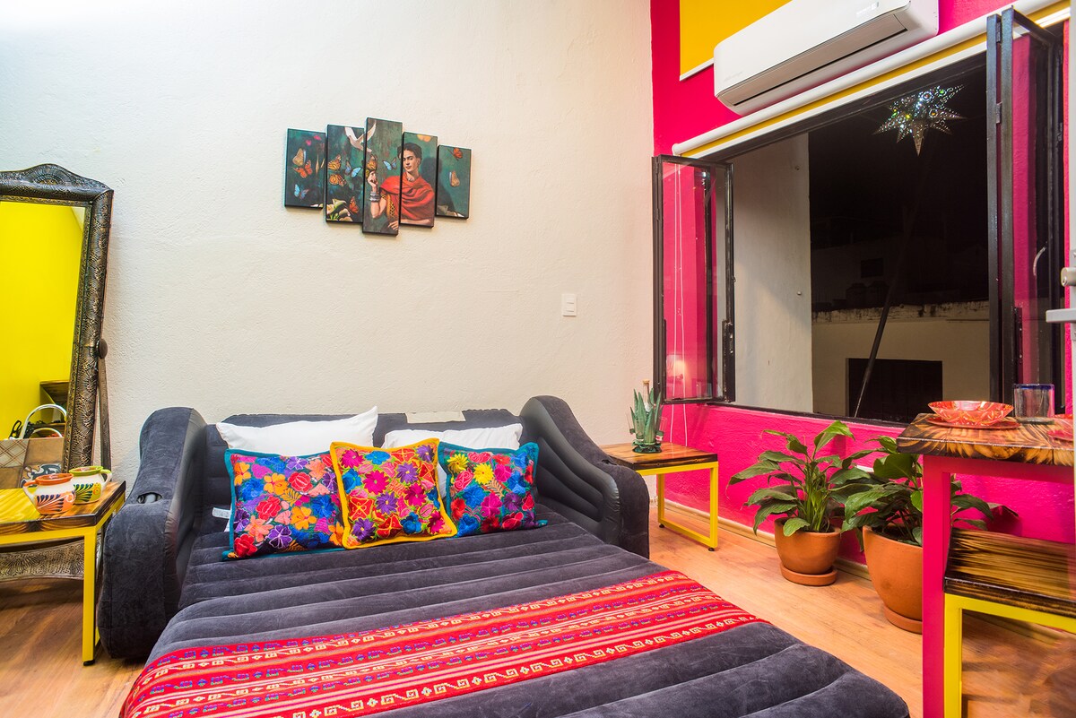 Inspiring Studio with Mexican style decoration located right in the middle of everything, half block from Malecon and the beach! Walkability and location cannot be beaten. Come and witness this amazing Mexican experience. This place is perfect for a couple but there is room for 4 persons. Sofa in living room is inflatable and it becomes a queen bed. King size bed with memory foam and cooling gel will make you sleep like a baby. Ask me!