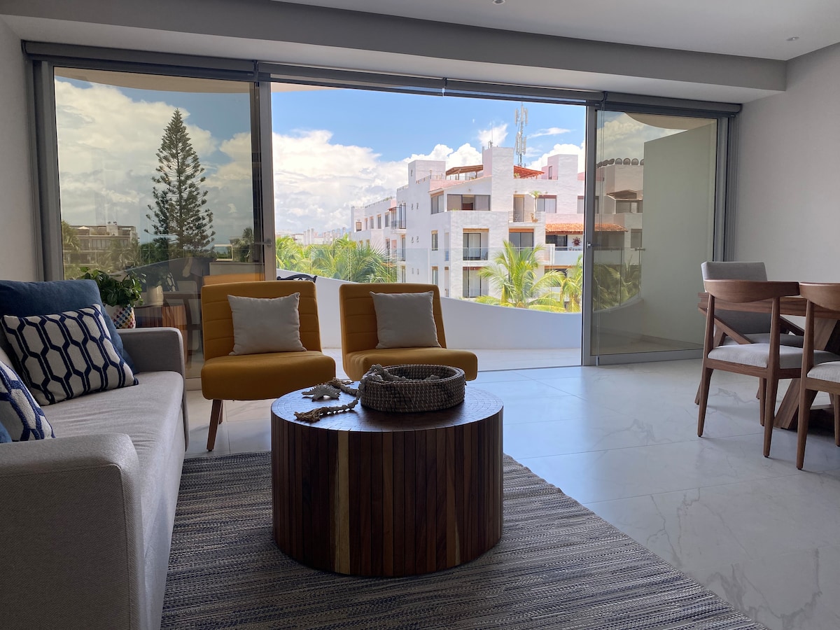Es un hermoso departamento en el primer piso a unos pasos de las albercas y playa ideal para familias cuenta con todos los servicios, 1 habitación principal con cama king y un sofá, terraza con vista parcial al mar, recámara secundaria con cama matrimonial y baño compartido a los dos cuartos. Practico y cómodo ideal para relajarte con tu familia. Sala de tele con sofá para 2 personas cocina y comedor y 1/2 baño. Terraza con vista parcial al mar y comedor para 6 personas . Albercas muy grandes .