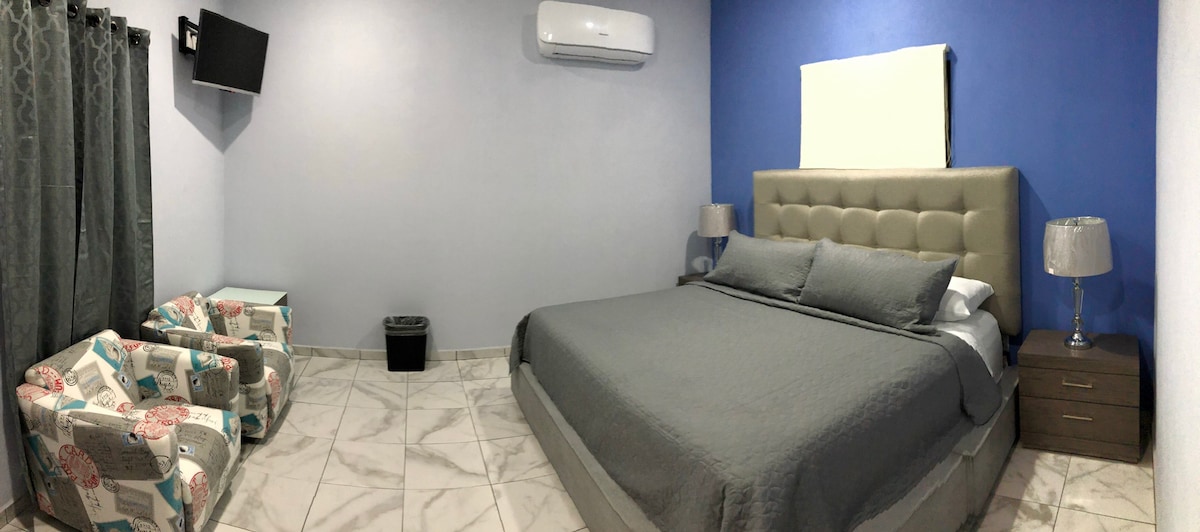 Perched on the mountain, the hill house with king size bed has three large windows and view deck that look out over the desert valley and the National Marine Park. The house is located at the end of a road which ads to the peaceful and quiet character of Cabo Pulmo, but is close enough and within a 10 minute walking distance to dive shops, restaurants and hiking trails. This unit has Starlink. The house is not set up for parties, loud music and children under 12 years old. Parking is on site.