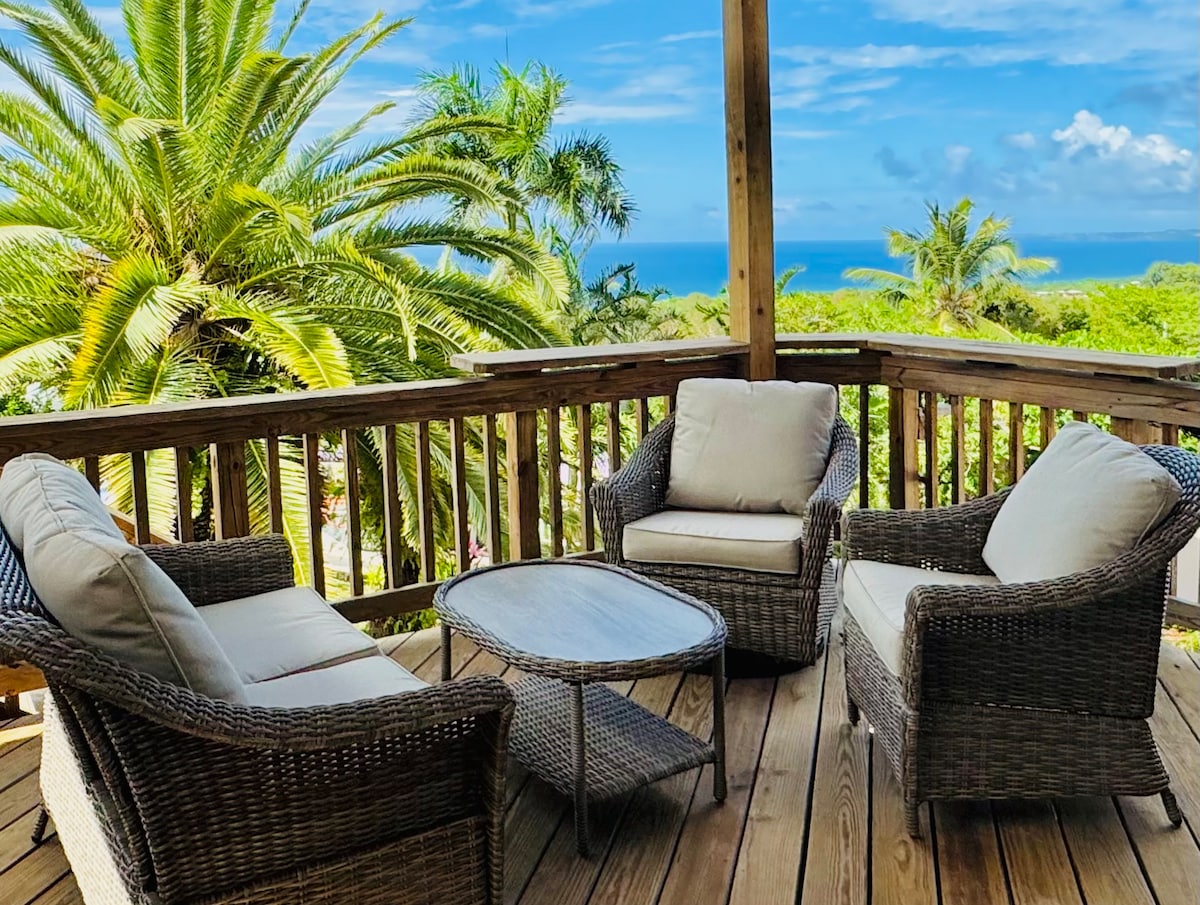 Este alojamiento con estilo es perfecto para una pareja. La unidad incluye un dormitorio espacioso, baño completo, sala de estar, comedor, cocina y patio con balcón. Relájate y desconecta en este alojamiento tranquilo y elegante con vistas increíbles al valle y al mar. La casa se encuentra en una calle residencial muy tranquila y silenciosa, pero a solo tres minutos de Sandy Beach, una gran variedad de excelentes restaurantes y bares en la ciudad y a 5 minutos de Maria's, Domes y Steps Beach.