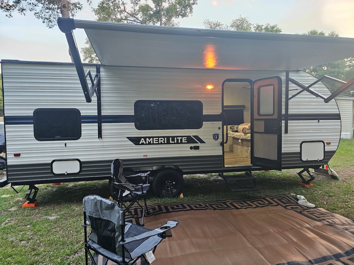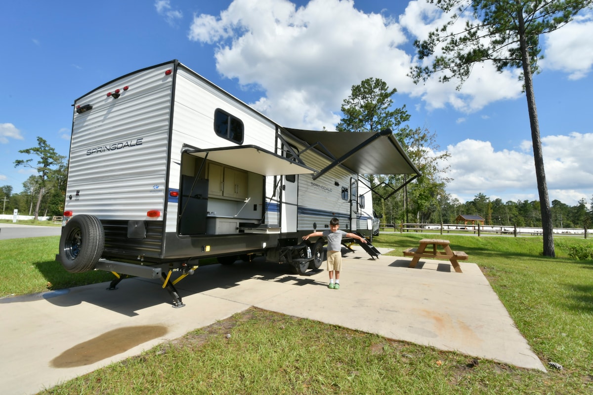 ***THIS IS A RENTAL FOR THE CAMPER THAT WE SET UP AT SALT SPRINGS CAMPGROUND. IT WILL BE SET UP PRIOR TO YOUR ARRIVAL :) YOU ARE RESPONSIBLE FOR BOOKING YOUR SITE WITH AT LEAST A 50AMP POWER AND FIT A 38FT RV. WITH SLIDES ON BOTH SIDES :) *** Enjoy the sounds of nature and stunning views of springs when you stay in this unique place. This is a beautiful campground that is wooded and has access to the springs so you can swim, snorkel and enjoy the Crystal-clear springs. There is so much to see!!