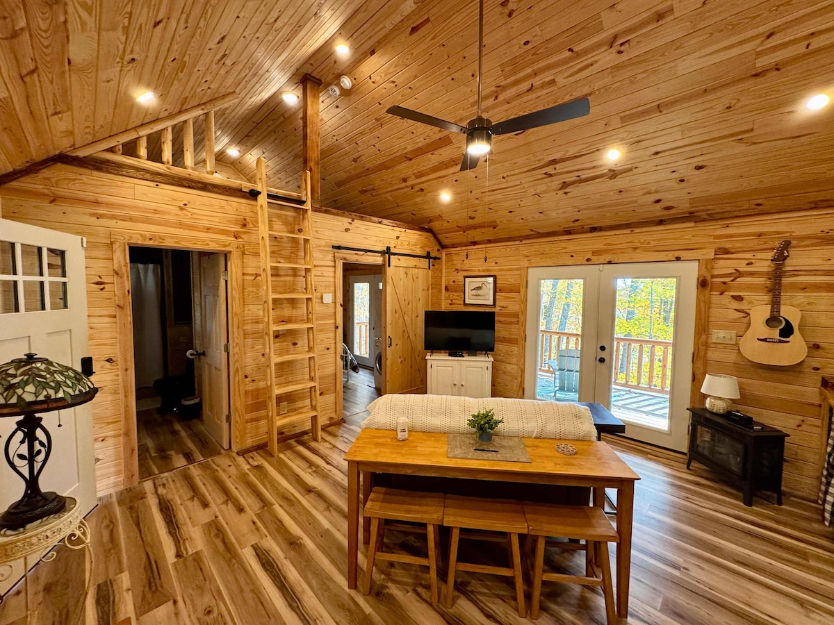 ¡La cabaña es un lugar maravilloso para una escapada en familia o en pareja! Está convenientemente ubicada a 3 minutos de una carretera de cuatro carriles y a menos de 15 minutos al sur de una ciudad que tiene una población de alrededor de 5000 habitantes y a 20-30 minutos al norte de una ciudad universitaria más grande de aproximadamente 35 000 habitantes. La cabaña está enclavada junto a un arroyo poco profundo y frente a 25 acres boscosos que son ideales para hacer senderismo y disfrutar de la naturaleza.