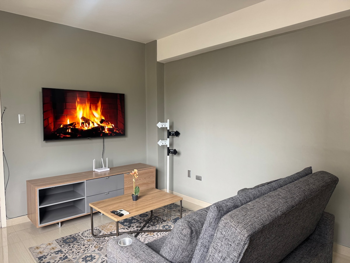 Disfruta de una experiencia con estilo en este alojamiento céntrico. Con una habitación confortable, buena vista a la ciudad, moderno, cómodo, limpio y muy agradable. Ventanas Antiruidos, Contamos con Alexa para que tu experiencia sea única, un espacio que te hará sentir como en casa. Tenemos Internet de 200 megas, Lavadora, Secadora, Aires Acondicionados, Tv de 55" y otro de 50", un Baño remodelado para su disfrute. Una Sala espaciosa y muy moderna. Puedes prender luces, aires y Tv's con Alexa.
