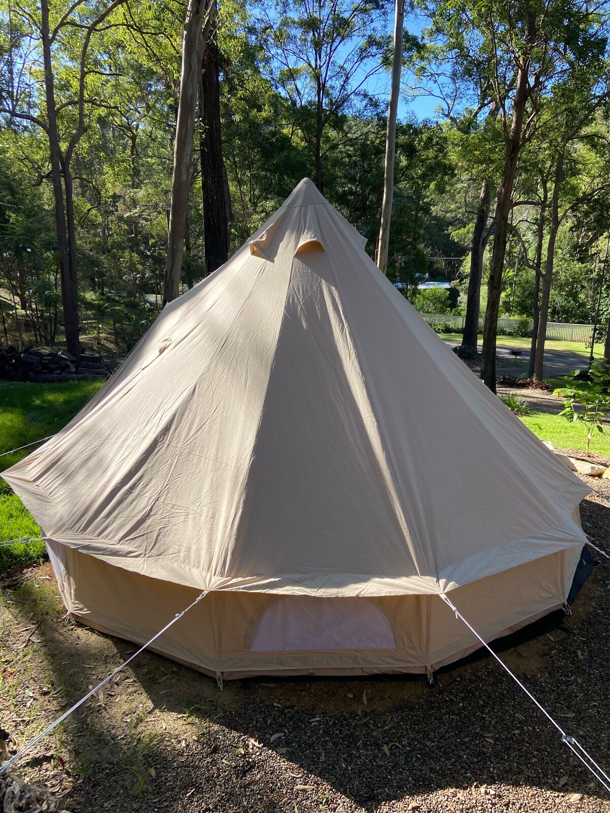 The 5 m. Bell tent with 2 Queen beds, floor cushions , portable fan,and lights. Timber table with seating for 4 people. Private fire place. Camp kitchen with sink, cutlery, gas stove, insect repellent, eski, Crockery, cooking utensils. Modern ensuite with kitchenette microwave, fridge, coffee machine, toaster, utensils &kettle. Shampoo conditioner, shower gel, towels provided. A retro style van provides a quiet area with books & games 1.1 km from Landsborough station. 4.3 km to Australia zoo