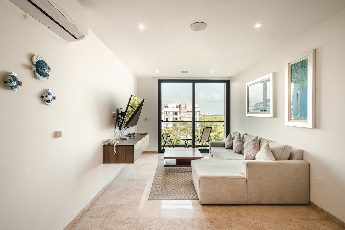 ✨ Casa Sol es un impresionante apartamento de 2 dormitorios/2 baños amueblado por diseñadores en las lujosas Residencias AWA. Disfruta de comodidades de estilo resort que incluyen piscinas ajardinadas, una piscina infinita en la azotea, bar en la piscina, jacuzzis, hamacas, gimnasio, estudio de yoga, espacio de coworking, seguridad 24/7, club infantil y parque infantil. Idealmente situado en Playacar, a pocos pasos de la playa, la Quinta Avenida, tiendas, restaurantes y atracciones. Perfecto para familias, parejas o amigos que buscan comodidad y estilo. 🌞✨