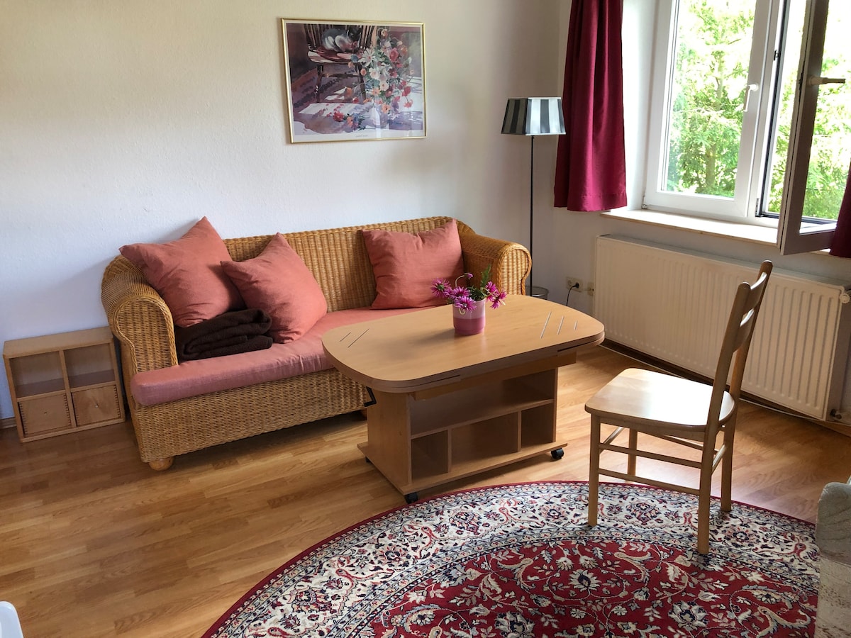 Nuestro apartamento es de 30 metros cuadrados, tiene una habitación acogedora y grande con chimenea, un baño pequeño y una cocina pequeña, está a 300 metros de la hermosa playa de Zippendorfer y tiene una entrada independiente. Hay aparcamiento disponible fuera de la puerta, pero por favor aparca de tal manera que podamos pasar con la bicicleta. Se utiliza el jardín.