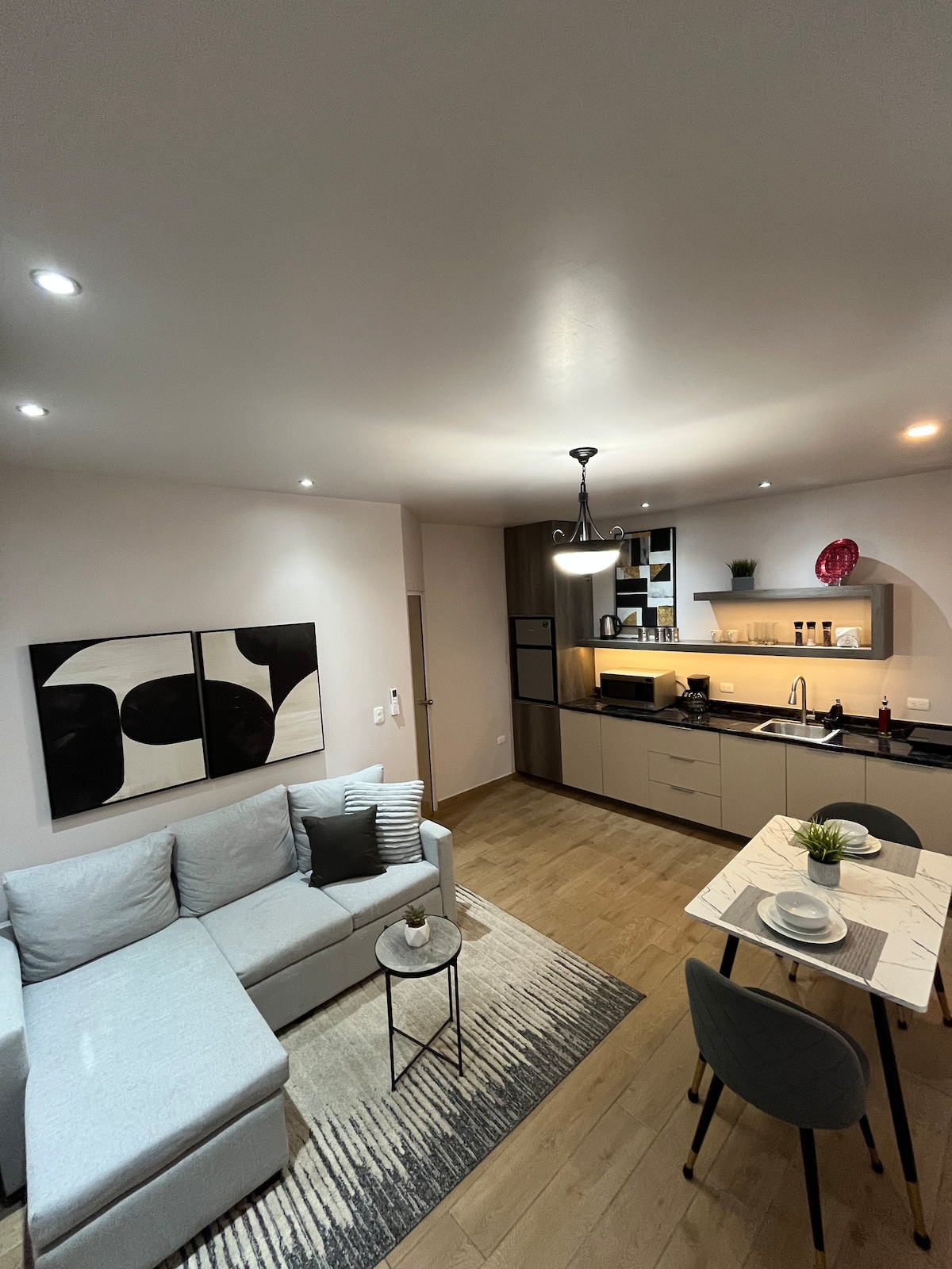 Sumérgete en la elegancia de este departamento diseñado para dos personas, que combina a la perfección estilo y funcionalidad. La atmósfera moderna y acogedora, junto con los detalles de diseño, hacen de este espacio el lugar perfecto para una estancia memorable.