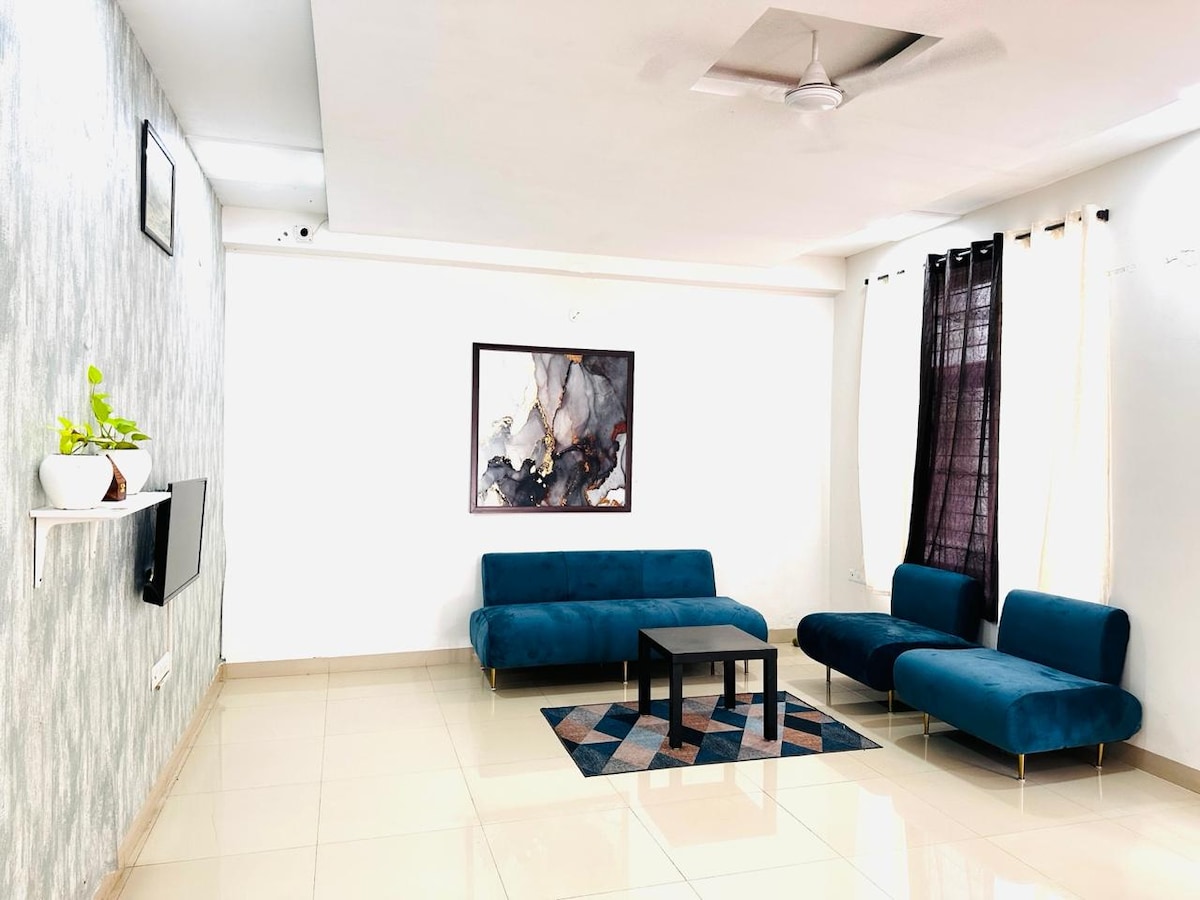 Servicios: Sala de estar con aire acondicionado y TV inteligente de 65 pulgadas Comedor 3 dormitorios con aire acondicionado y baños adjuntos Servicio DE limpieza todos los días. Mesa TT Lavadora Cocina equipada Microondas, hervidor de agua, arrocera, purificador de agua Refrigerador 3 géiseres Estacionamiento gratuito Entra en la tranquilidad en nuestro encantador apartamento 3BHK para una escapada pacífica. Relájate en el salón, con un columpio perfecto para relajarte después de un largo día. Ubicado en un vecindario tranquilo, ¡es ideal para cualquier persona que esté buscando un retiro sereno!