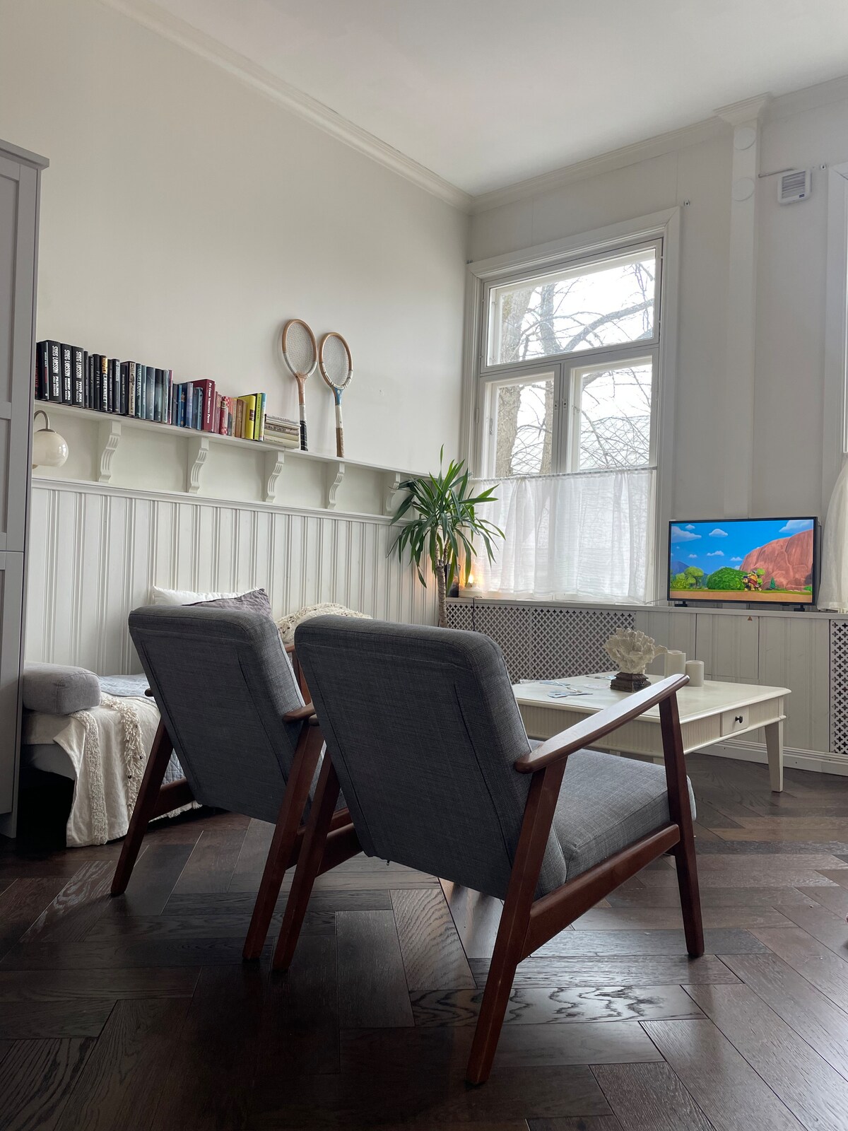 Alójate en un acogedor estudio en el histórico Hotel de Emigrantes, construido a principios del siglo XX y protegido por Patrimonio. A pocos pasos del puerto, restaurantes y tiendas, y a 400 m de la playa. Techos altos, grandes ventanas con vistas al torreón y la iglesia de Hanko, y suelos de madera originales. Totalmente renovado y equipado, ¡incluye dos bicicletas autenticas Jopo!