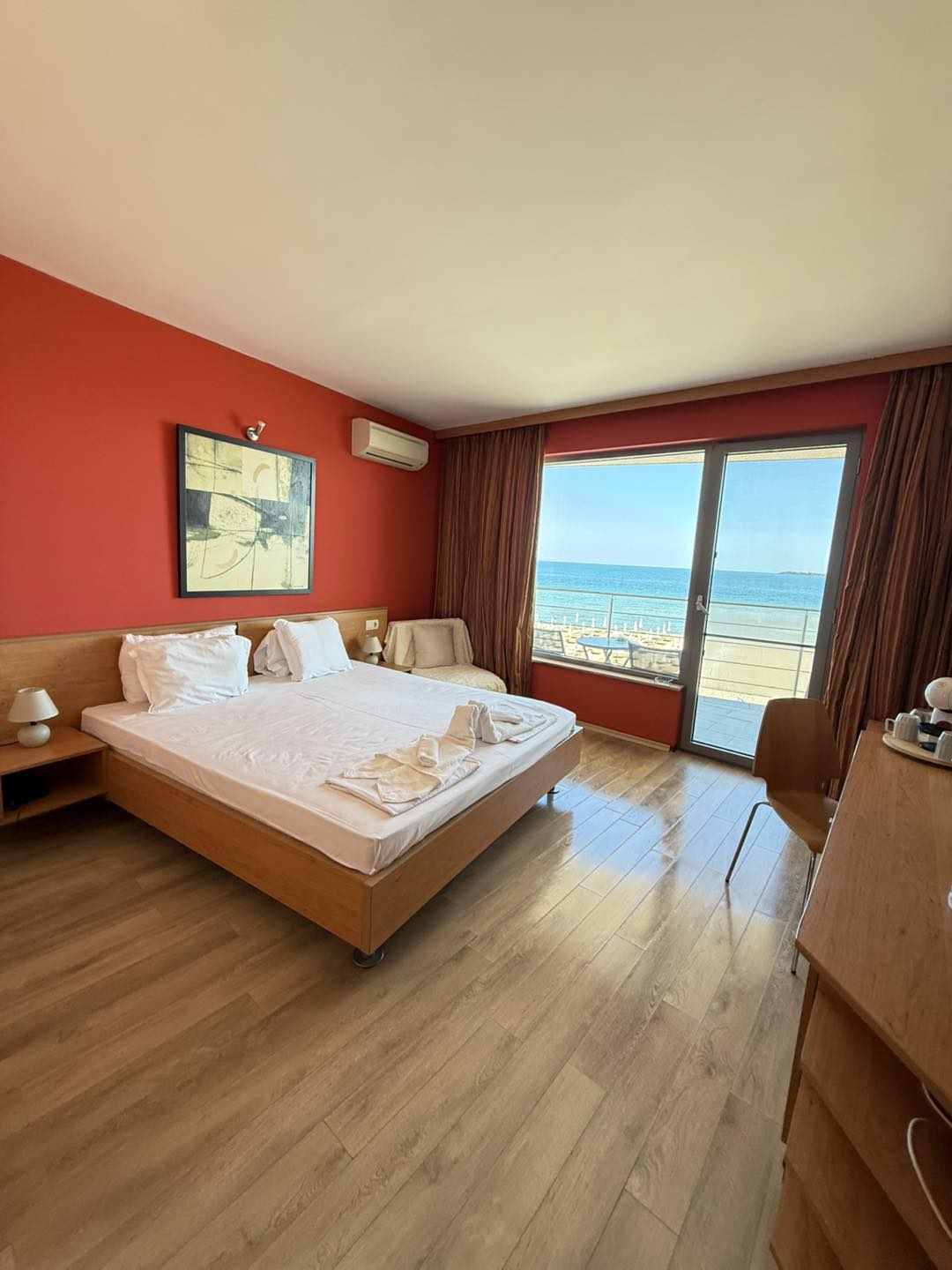 Excelente ubicación en la playa. Amanecer desde la cama. Vista al viejo Nesebar. Tranquilo y limpio. Ideal para vacaciones. Estamos más cerca de la playa. Estamos en la playa :)