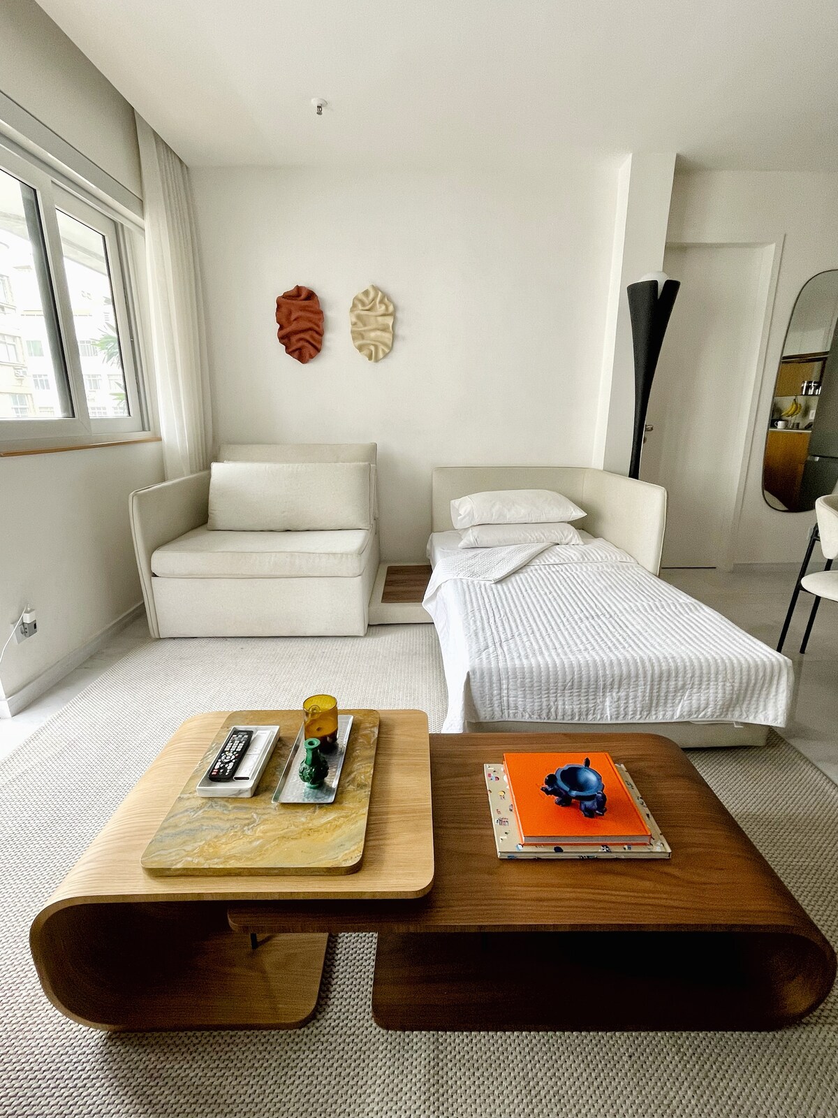 Siente la bossa nova con la brisa del mar en CASA JOBIM, y disfruta de toda la experiencia y comodidad de estar en un apartamento de diseño conceptual en Copacabana, donde la inspiración se encuentra con la belleza de Río de Janeiro. Estamos ubicados en el Real Residence Hotel, que ofrece todas las comodidades para una estancia elegante y agradable. Ofrecemos servicio de limpieza, Wi-Fi de 500 MB, TV por cable, Netflix y aire acondicionado y espacio de coworking a tres cuadras de la playa. Opción de dos camas individuales o una cama queen.