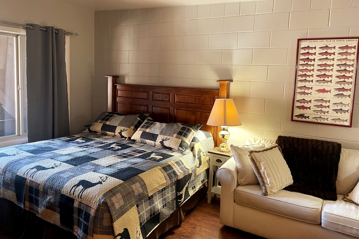Apartamento totalmente amueblado con cocina completa y una gran vista del cañón de Rock Creek. Este es un apartamento muy privado separado de la casa principal. La propiedad está directamente en Rock Creek e incluye wifi y TV inteligente. A solo 5 millas de Red Lodge. La cama tamaño queen en el dormitorio y el sofá en la sala de estar es un sofá cama tamaño queen. El dormitorio de mi vecino está a solo 40 pies de distancia, por lo que no aceptaré motocicletas ruidosas.