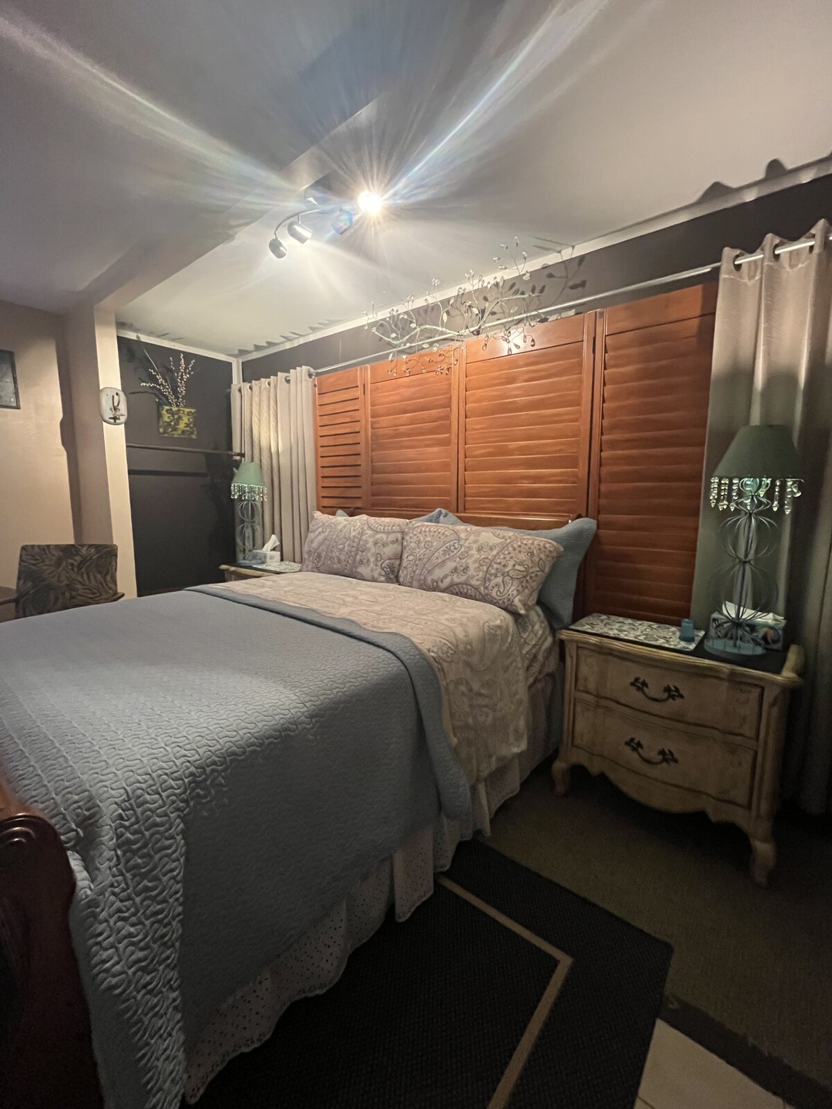 This is a nice master bedroom, converted to a guest suite. The room has a private entrance, and private bathroom. Walls were recently torn down & made sound proof so as to not disrupt our guest with noises inside the house. This house has a lot of history, it’s over 120 years old. It’s perfectly situated about a minute away from the freeway is a central locations, in the beautiful & historic city of Redlands. Security cameras recording at all times all around the outdoors of the property.