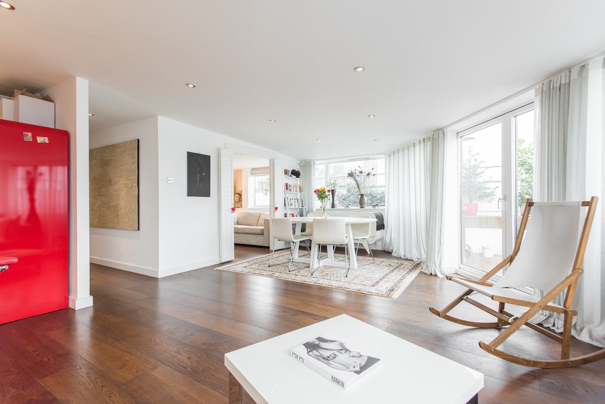 Disfruta de la esencia de la elegante vida urbana en un edificio histórico emblemático en el corazón de Clerkenwell. Tranquilo y aislado, pero a solo unos minutos de las bulliciosas tiendas, cafeterías y restaurantes del moderno Exmouth Market, este espacioso apartamento atraerá a arquitectos, diseñadores o casi cualquier persona con gusto por lo mejor de Londres. Con una cocina totalmente equipada, lavavajillas, horno, lavadora-secadora e incluso configuración de cine en casa, es ideal para viajeros de negocios, parejas, grupos y familias por igual.