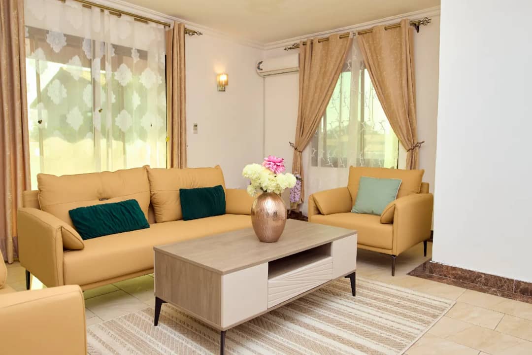 Cadre de vie Idéal, 🏡 de plain-pieds au style scandinave à deux pas d'une 🏄 : - Piscine Privée - Navette A/R Aéroport offerte - Séjour + Cuis. Ouverte 🛋️ - 2 Ch 🛏️ doubles climatisées❄️ - Sdb 🛁🚽 - Groupe electrogene - Machine à laver - Terrasse 🌄Salon jardin ext 🌿 - barbecue🫕parking 🚗 - Femme de ménage 🧑🏿🦰 - Pressing offert - gardien pour la sécurité 👮🏾♂️ -Internet 🌐 - Eau chaude 💧 - Canal +, Netflix... Situé à Ngoyo 2 contenairs rive droite tout proche de la plage.