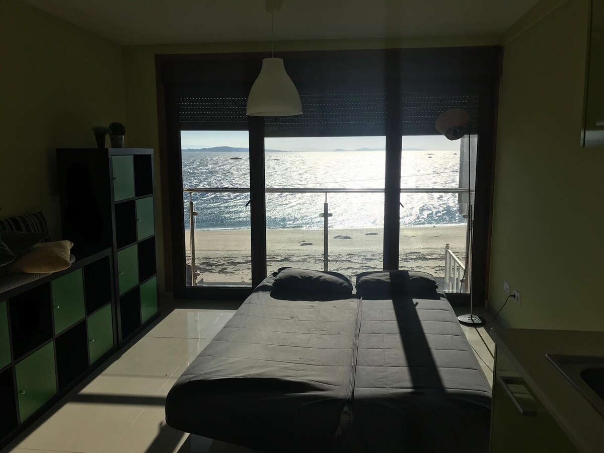 APARTAMENTO CON VISTAS AL MAR Y ACCESO DIRECTO A LA PLAYA (10 METROS) CONTIENE: -HABITACION -BAÑO -COCINA-COMEDOR -SALON (CON SOFÁ-CAMA) APARTAMIENTO MUY NUEVO Y CUIDADO. ESTÁ EN UN SITIO EL CUAL SE PUEDE IR ANDANDO POR UN PASEO A 10 MINUTOS DE RIVEIRA. EN COCHE A 2 MINUTOS DE RIVEIRA. NO HAY PROBLEMAS DE APARCAMIENTO; SIEMPRE HAY AL LADO DEL EDIFICIO. VISTAS A LA RIA DE AROUSA