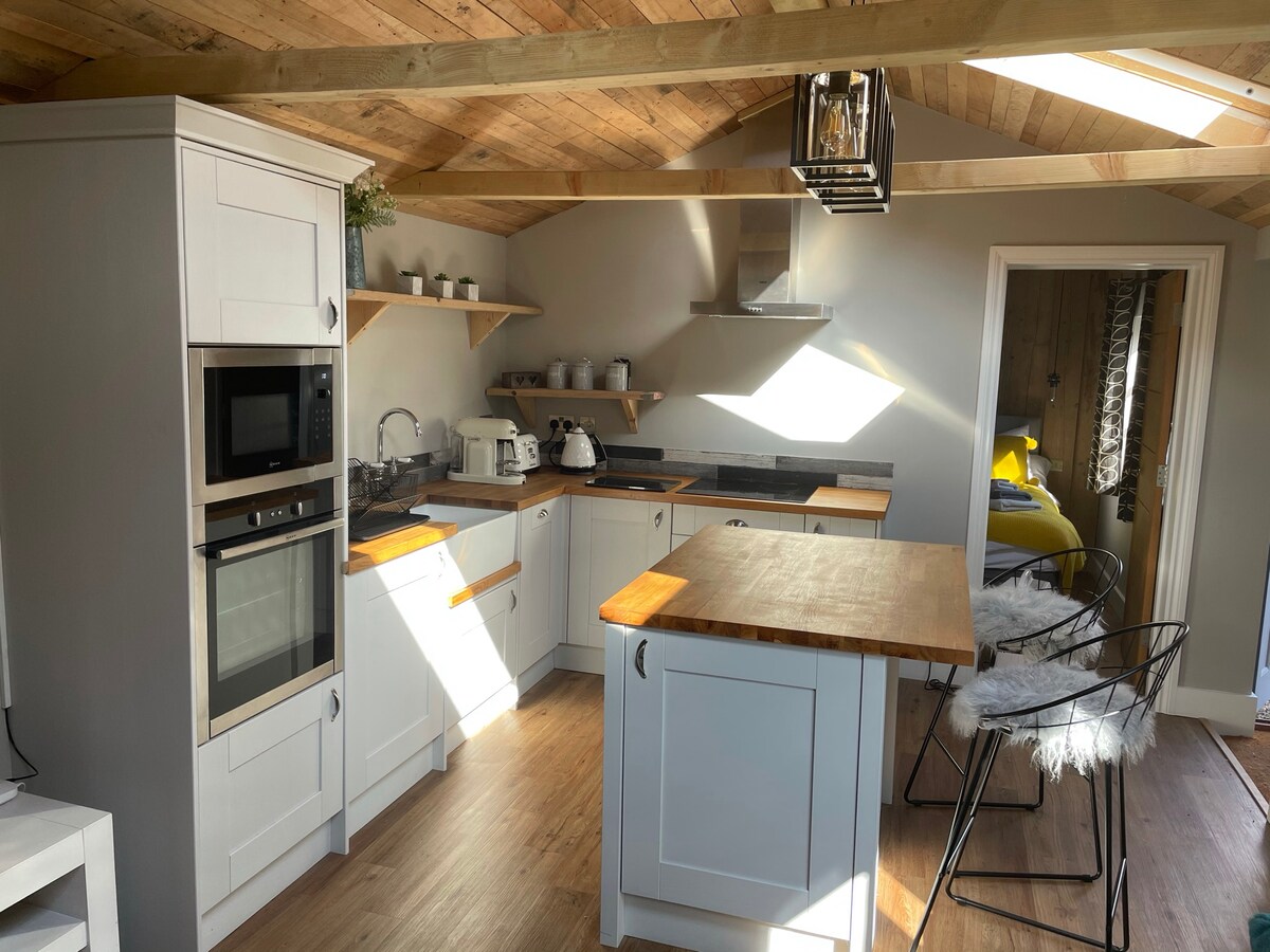 Nuestro granero estudio inspirado en un chalet, con techos abovedados y vigas de roble, es luminoso y espacioso en verano y maravillosamente cálido y acogedor en invierno, con calefacción por suelo radiante en todas partes. Es completamente independiente, con entrada independiente de la casa familiar adyacente. Con una suntuosa cama tamaño king (o dos individuales), sofá cama, wifi rápido ilimitado y TV de alta definición, te aseguramos una estancia relajante y acogedora en un entorno familiar en la campiña de East Sussex.