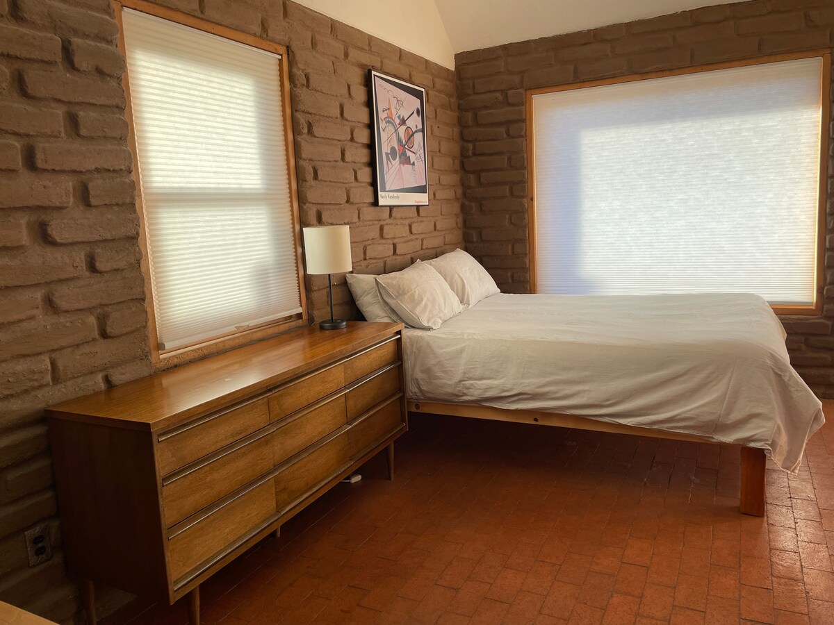 Bienvenido a nuestro encantador Airbnb con temática de Agave situado en el corazón de Albuquerque, un encantador refugio de 1 dormitorio y 1 baño que promete una experiencia memorable en el suroeste. Ubicado a lo largo del pintoresco sendero para bicicletas/peatones de Bosque, este acogedor refugio ofrece una mezcla perfecta de tranquilidad y cercanía a algunas de las atracciones más emblemáticas de Albuquerque. Una vez dentro, serás recibido por el ambiente cálido y acogedor del tema Flor de cactus, donde la decoración de buen gusto del suroeste crea un ambiente relajante.