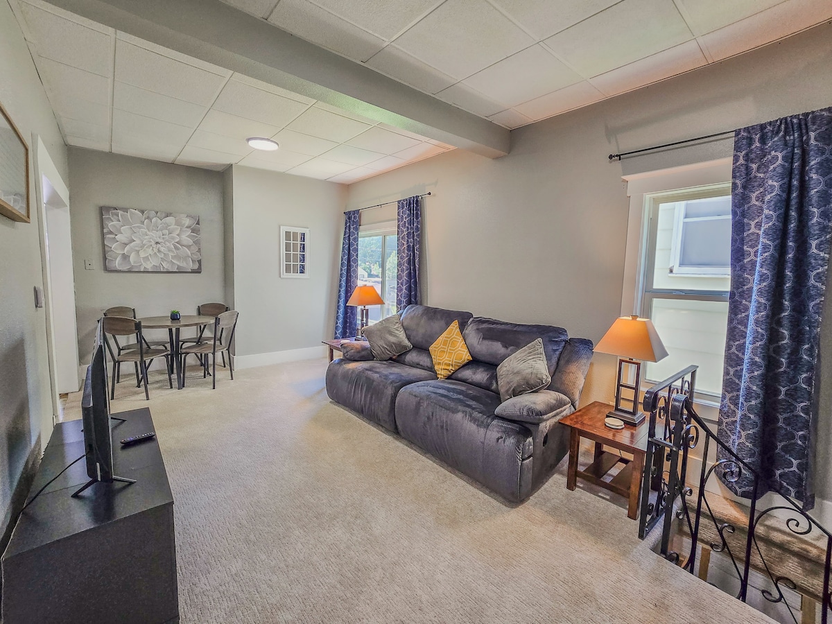 El apartamento se encuentra a poca distancia a pie de todos los pubs y tiendas del centro de Bismarck. También está a poca distancia a pie del centro de eventos Bismarck y de ambos hospitales y del centro comercial Kirkwood. El apartamento está arriba de un edificio histórico recientemente reformado. El apartamento tiene techos altos, suelos de madera, aire acondicionado central, lavadora, todas las comodidades de estar en casa, wifi, servicio de internet de alta velocidad y televisión por streaming. Además de aparcamiento seguro fuera de la calle detrás del edificio.