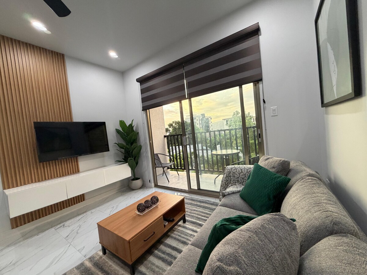 Este luminoso y elegante apartamento de 1 dormitorio con ubicación céntrica es el espacio perfecto para tu estancia. Se encuentra a 8 minutos a pie o a 2 minutos en coche de Starbucks, supermercado, farmacia y restaurantes locales. El espacio habitable contemporáneo tiene todo lo necesario para que te sientas como en casa: wifi, cable local, Netflix, lavadora/secadora, unidades de aire acondicionado, cama tamaño king, una cocina bien equipada y vajilla. Tómate una copa de vino y disfruta de la hermosa puesta de sol en el balcón después de una larga jornada de trabajo o juego.
