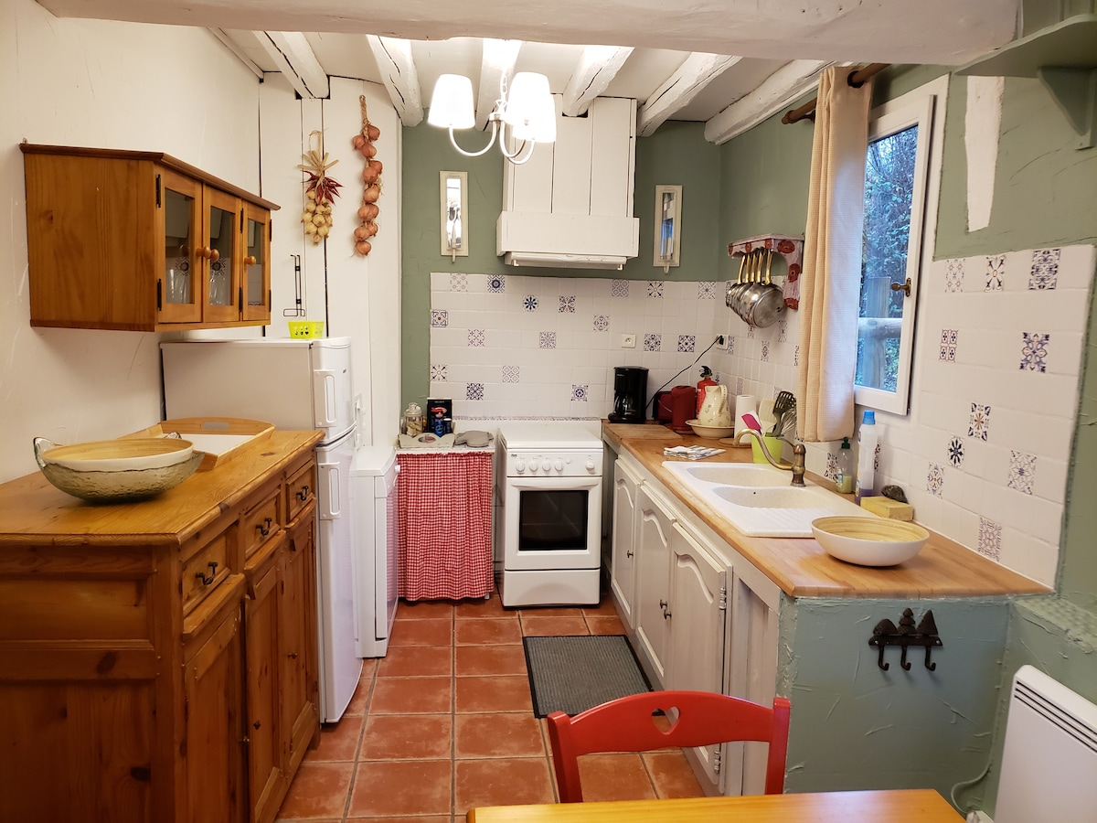 Encantador horno de pan antiguo con entramado de madera, situado a orillas del arroyo, consta de: - Sala de estar con estufa de leña, - Cocina, - En la planta superior: -cuarto de ducha/WC accesible por una escalera de molinero (ver fotos), -habitación con una cama de 160x200 con vistas al arroyo, accesible por una escalera de molinero (ver fotos), El dormitorio y el baño no están comunicados. Muebles de jardín, barbacoa, aparcamiento privado, leña incluida Nota otra casa, la Casa de piedra, está a 100 m