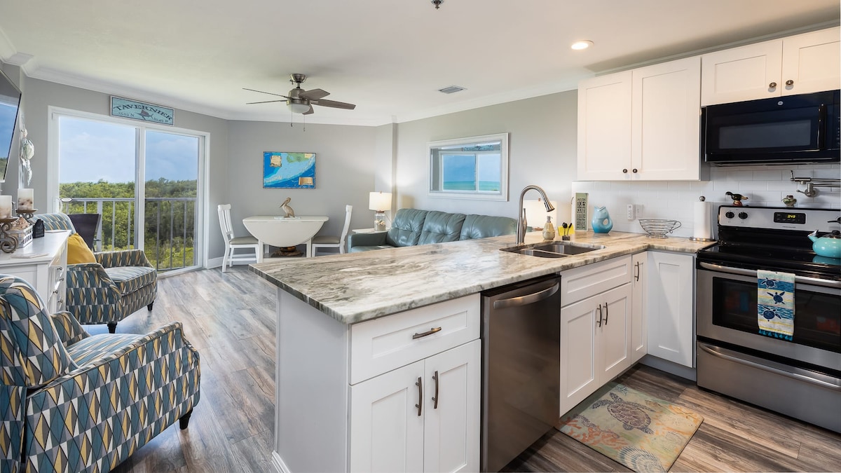 Renovado Anglers Reef 2BR + Dormitorio + Vistas al mar