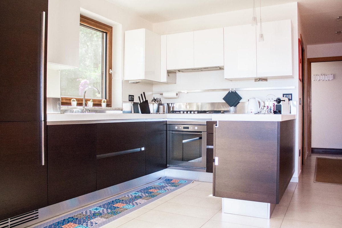 Habitaciones luminosas orientadas al sur con vistas al mar. Mobiliario moderno, iluminación exterior con farolas de hierro forjado. Amplio aparcamiento dentro de la propiedad. Tranquilidad y relax garantizados. Máxima privacidad y disponibilidad para cualquier necesidad. A unos 1 km del mar, la playa es realmente hermosa y limpia, ondea la bandera azul. Los huéspedes a su llegada deberán firmar un contrato de alquiler. En cualquier caso, no tendrán que pagar ninguna cantidad además de la ya pagada a Airbnb.