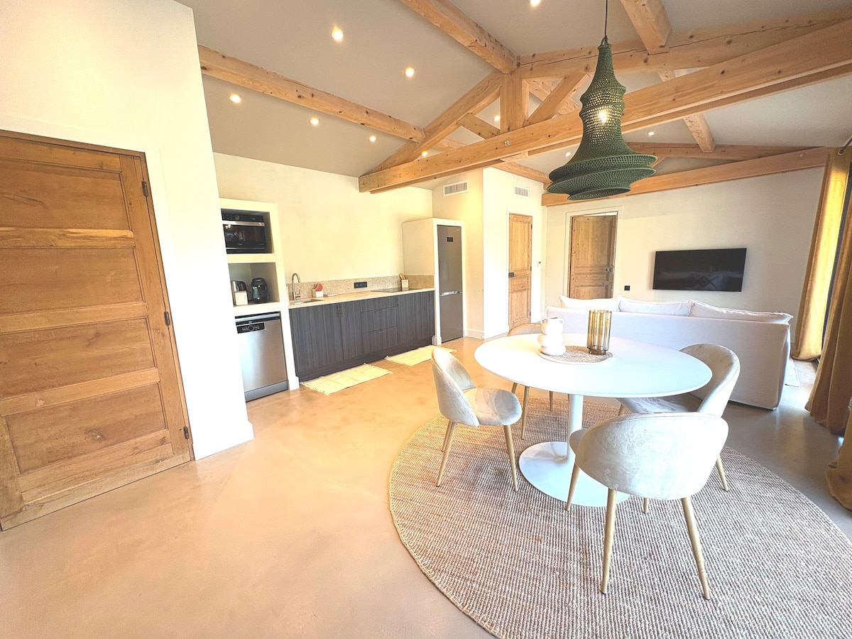 Bienvenido a nuestra encantadora suite climatizada «Villa Serenity», situada en una villa tranquila con terraza y piscina privada de agua salada. Cocina de verano disponible para disfrutar de los días soleados. Nuestra joven perra, muy cariñosa, comparte el terreno: le encantan los mimos y puede ser un poco pegajosa🐶. Si le gusta la naturaleza y los animales, ¡se sentirá como en casa!