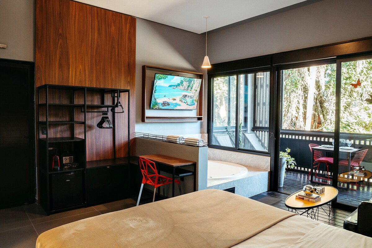 Disfrute del refugio EXCLUSIVO Y PRIVADO con jacuzzi caliente, en medio de un bosque con espectaculares VISTAS del atardecer en Lagoa Encantada. Las suites cuentan con aire acondicionado, TV y Wi-Fi de 600 MB Ofuro caliente y con hidromasaje. Quiosco Espacio Gourmet completo. Hay dos suites, una con una cama doble y la otra con dos camas dobles, no se alquilan por separado. Cerca de la playa y del centro. Acceso a la playa por sendero o escalera exclusiva, un hermoso ejercicio para el cuerpo y el alma.