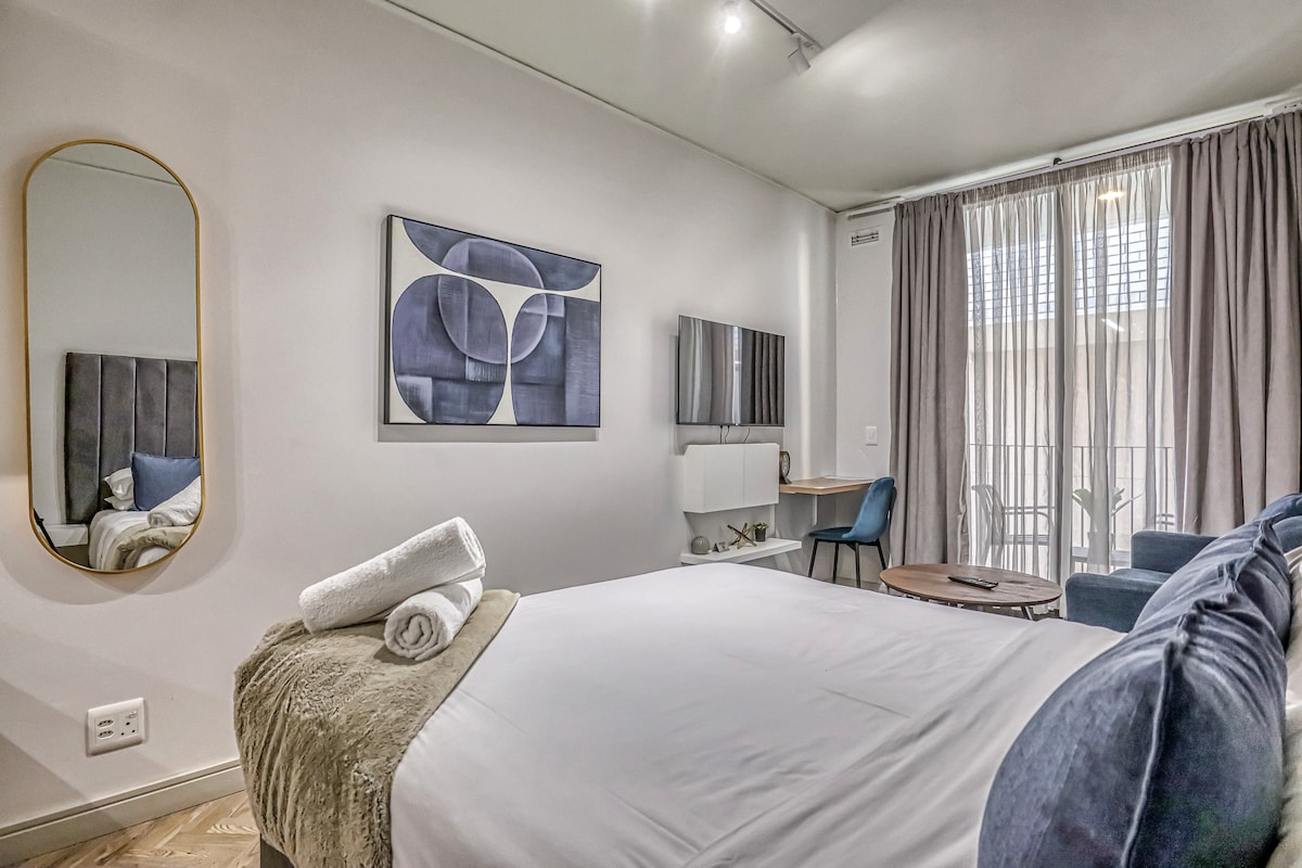 Este elegante y espacioso estudio de planta abierta en uno de los edificios más antiguos de Rosebank es perfecto para viajeros de negocios, aventureros solitarios o parejas que buscan comodidad y conveniencia. Camina hasta Gautrain, el centro comercial Rosebank, The Zone, galerías, gimnasios y restaurantes. Disfruta de una transmisión sin interrupciones con wifi y TV alimentados por inversor, además de iluminación de emergencia en caso de corte de energía. Bonus: agua de reserva para esos días de «deshidratación». Mezcla ideal de comodidad, ubicación y fiabilidad para tu estancia en Rosebank.