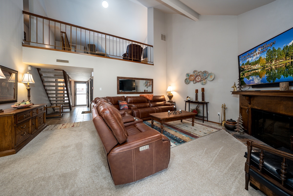 ¡Escapada a los pinos! Este espacioso apartamento de 1800 pies cuadrados se puede alquilar como un 2-2 (con capacidad para 4 personas) o como un 3-3 (con capacidad para 8 personas), según el número total de huéspedes. Tiene una enorme terraza cubierta, elevada entre los pinos, con una parrilla de gas y un fogón de gas. Está cerca de Ski Apache, Winter Park, Enchanted Vine Winery, senderismo en Alto Lake y Flying J Ranch. La vida silvestre es muy abundante: alces, ciervos, caballos salvajes, colibríes. **Piscina comunitaria, desde el Día de los Caídos hasta el Día del Trabajo**