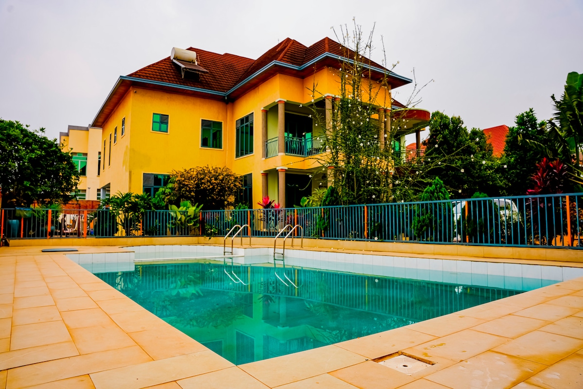 ¡Bienvenido a mi acogedora villa! Mi alojamiento está ubicado en la capital de Ruanda, Kigali. Es un entorno limpio, seguro y acogedor. Este lugar es ideal si quieres relajarte La villa está cerca de pequeñas tiendas, restaurantes, pequeños pubs y mucho más. Por supuesto, puedes ir siempre a la ciudad, que se encuentra cerca. Por el acogedor vecindario, es ideal para dar hermosos paseos para disfrutar de su naturaleza. Esta casa tiene wifi, baños con agua caliente, piscina, espacio de estacionamiento...