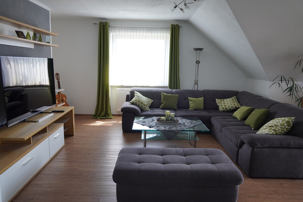 Bienvenido a nuestro espacioso apartamento en la planta baja en el campo con balcón y terraza. Tiene su propia entrada, sala de estar, cocina/comedor y un dormitorio. Es un apartamento para no fumadores y no se admiten mascotas. El departamento se encuentra en un distrito de Lichtenau, que está a 2 km de distancia. Hay tiendas, restaurantes, un campo de golf y una piscina al aire libre.