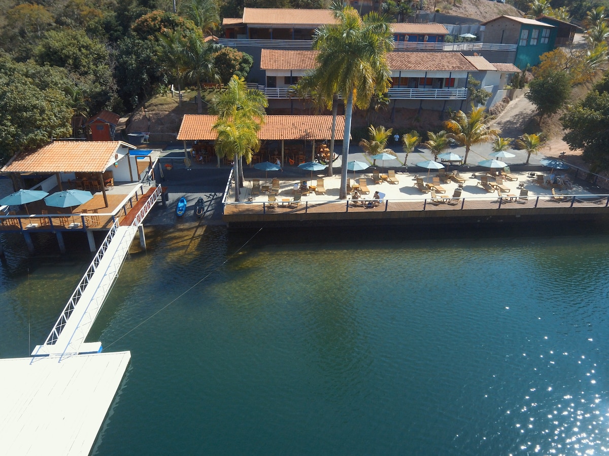 Refugio accesible en la presa de Jaguara (Sacramento/MG). Piso en un condominio con una rampa exclusiva para tu barco. ¡Ideal para la pesca y el ocio náutico! Disfrute de la piscina, la sauna y la barbacoa con vistas panorámicas a la presa y a la gran zona verde. Estamos a solo 3 km de Rifaina (SP). Ubicación: Carretera sin nombre, 38190-000. ¡Reserva tu aventura acuática!
