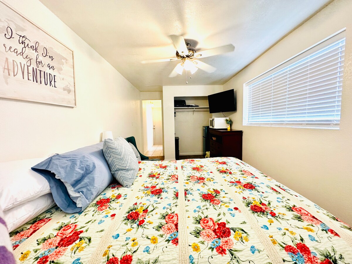 ¡Encantadora casa de campo céntrica en Safford! Disfruta de una cocina remodelada con encimeras de granito, un baño actualizado y suelos nuevos en todas partes. Relájate con un televisor de 70 pulgadas en la acogedora sala de estar o desconecta en el espacioso patio trasero con árboles frutales, bancos y una parrilla. La casa de campo cuenta con una cama tamaño king, dos camas de tamaño completo, un colchón de aire para espacio adicional para dormir y muebles de dormitorio completamente nuevos. Con un pequeño gimnasio, un amplio estacionamiento y un patio vallado para mayor privacidad, es un refugio tranquilo en Safford.