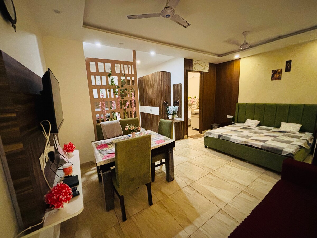 Reservado para familias, empresas e ideal para pacientes de fuera de la ciudad (fortis, max, etc.). El alojamiento está en la carretera del aeropuerto, muy cerca de la escuela internacional Amity. Cargado de interiores atractivos y enriquecedores. Algunas de las siguientes instalaciones de esta propiedad son las siguientes: > Televisores inteligentes HD > Cocina de gas (precio adicional) > Cocina bien equipada con servicios como microondas, nevera, chimenea, vajilla, hervidor, batidora, etc. > Lavadora > Luces de dos colores en las habitaciones
