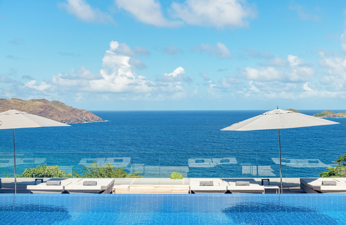 Nestled on the hillside of Petit Cul-de-Sac, Cairn is a contemporary villa where sea, sky, and nature meet. The spacious terrace and heated pool invite quiet moments facing the horizon. The open living area flows toward the ocean view. Two bedrooms sit beside the main room, while two others open privately onto the terrace. A path leads to the lagoon for peaceful walks. Simple and serene, it’s a perfect place to share with friends.