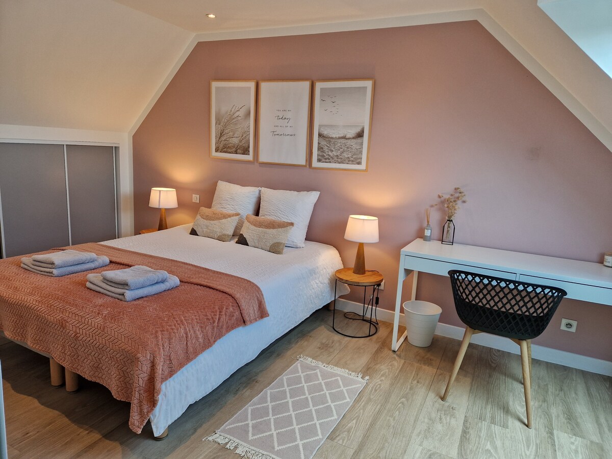 Coloca tu equipaje en esta acogedora decoración ecológica «cabaña de licores» del nido. Este alojamiento es independiente. Disfruta de su ubicación tranquila en un gran jardín y comodidad para romper con tu vida diaria y relajarte durante tu estancia. Benefíciate de un entorno de teletrabajo único para combinar actividad profesional y relajación. Débit : 91 Mbts / 88 Mbts.
