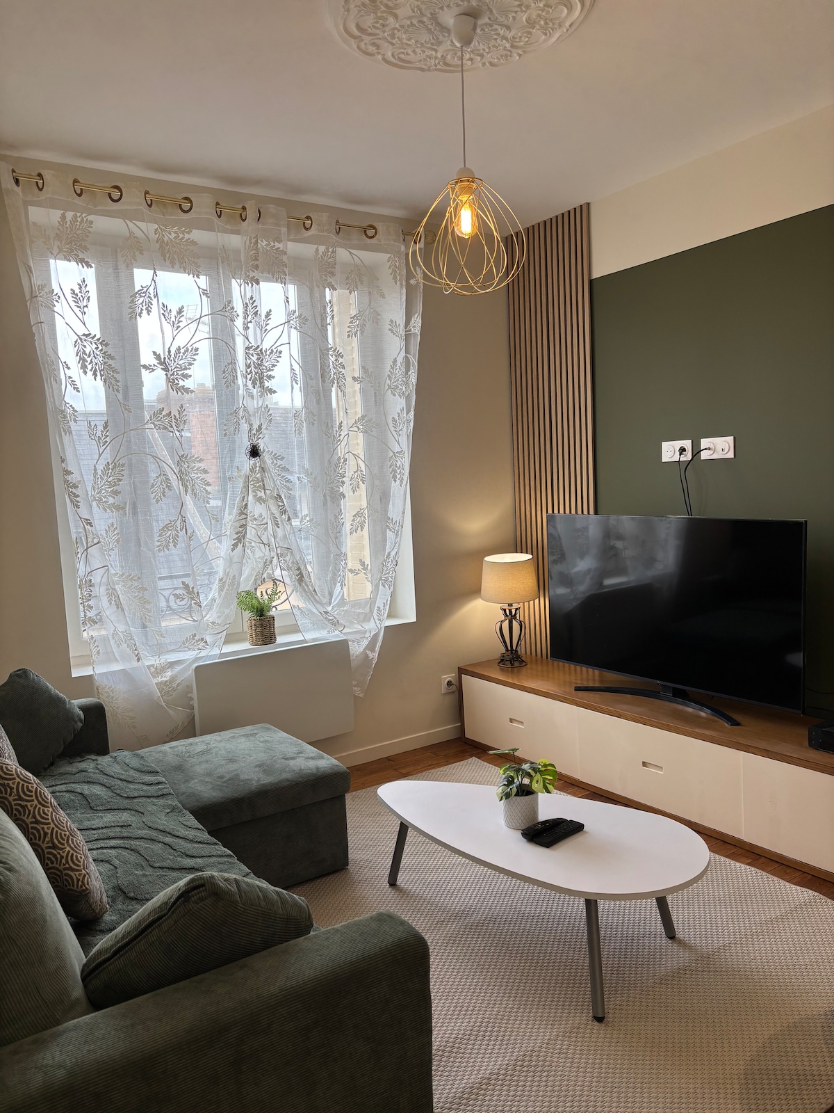 Disfrute de un paréntesis de bienestar en un espacio acogedor, decorado con buen gusto para su comodidad, ideal para relajarse después de un día ajetreado. Está totalmente amueblado y equipado: almacenamiento, lavadora, hervidor de agua, microondas, horno, placas eléctricas, vajilla y utensilios. Se proporciona ropa de cama: toallas, sábanas, mantas, almohadas... Una acogedora zona de noche, una cálida zona de estar con TV y conexión a internet de alta velocidad. En una residencia segura